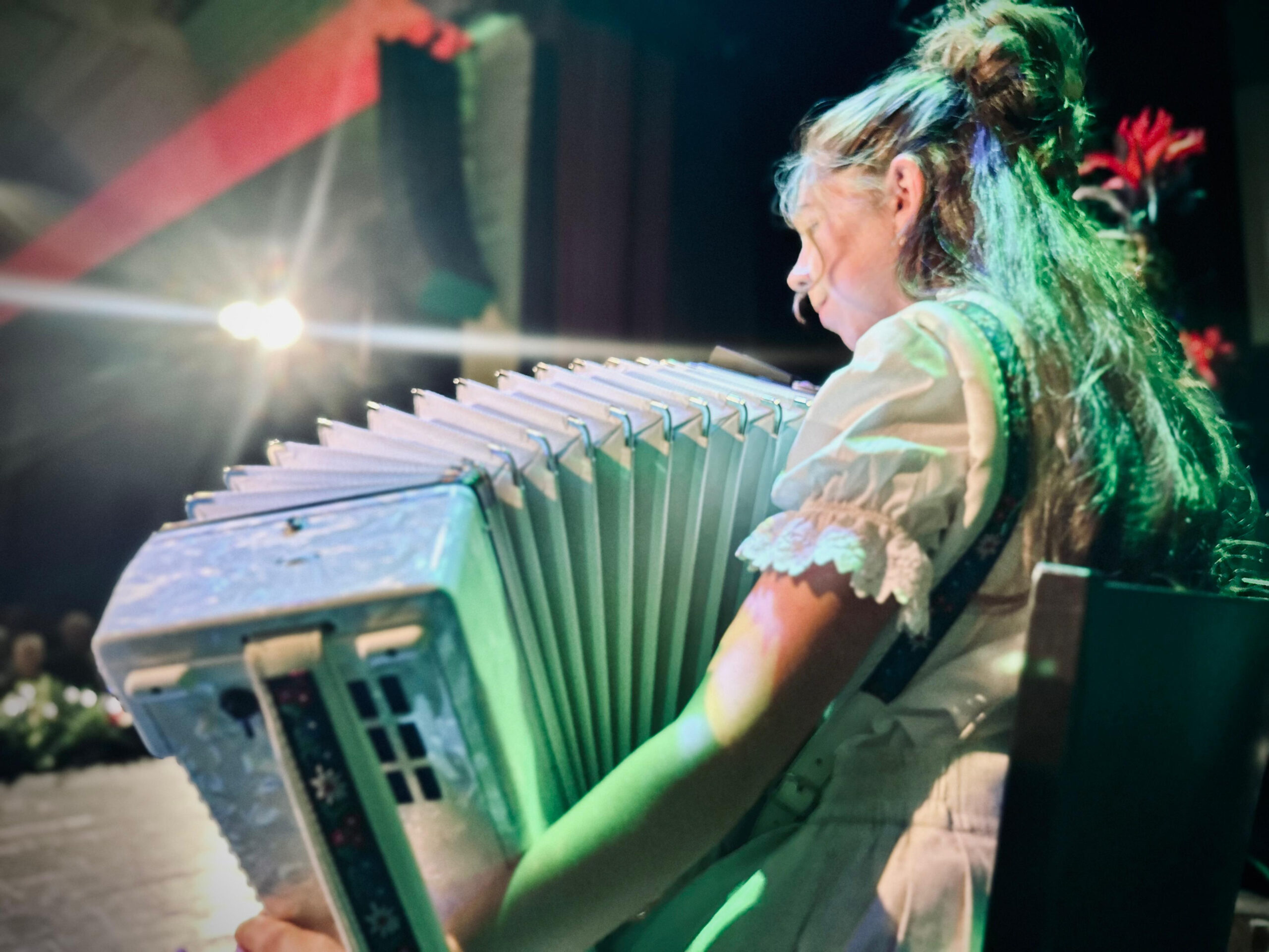 Ebensfalls bereichert die Schülerin Leni Schaarschmit aus Geyer die Gala mit ihrem frischen herzlichen Spiel auf dem Akkordeon. Das Nachwuchstalent spielt seit 9 Jahren das tradtionelle Instrument mit dem Schwerpunkt Volksmusik.